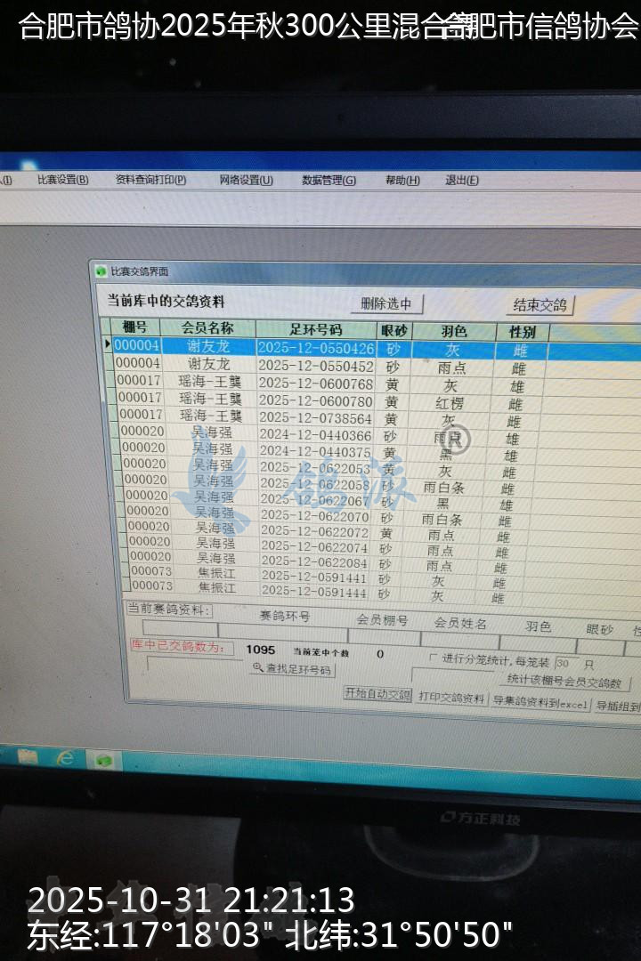 合肥市鸽协2025年秋300公里混合赛——照片由"鸽派"提供。 司放轨迹 监放单