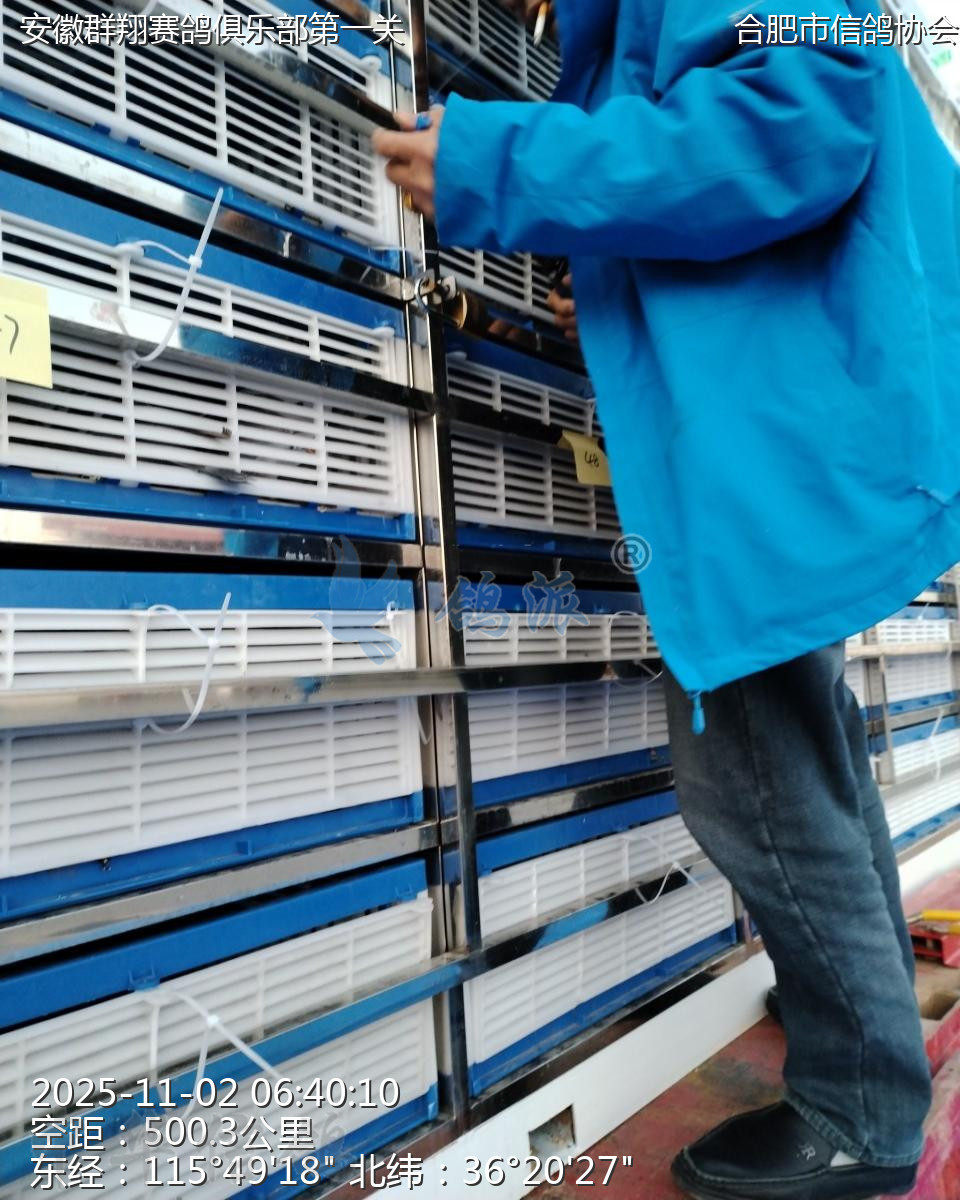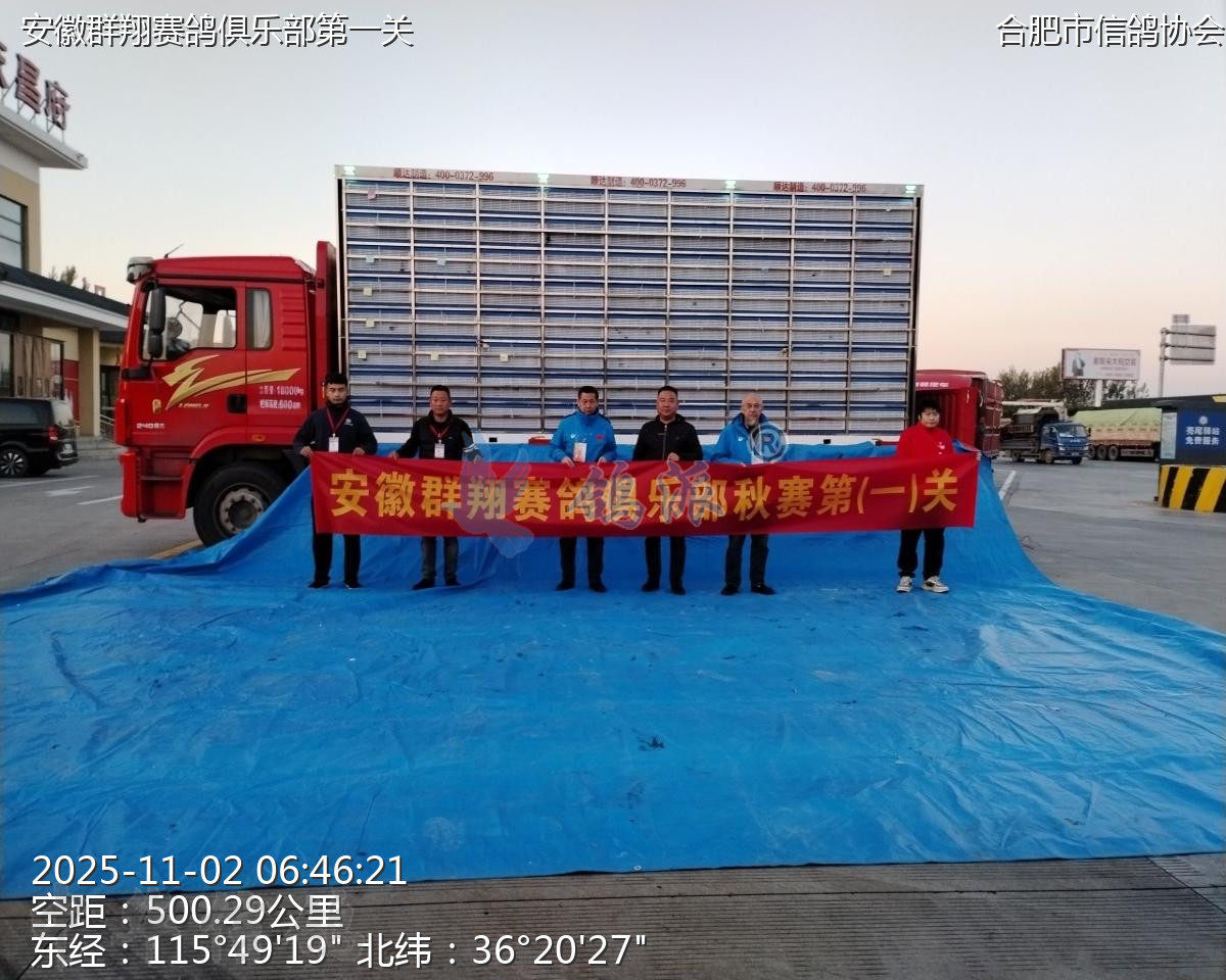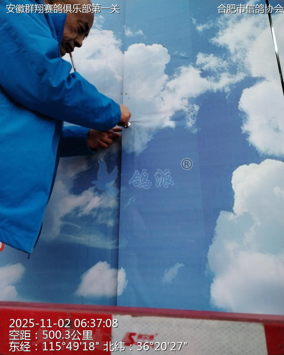 安徽群翔赛鸽俱乐部第一关——照片由"鸽派"提供。 司放轨迹 监放单
