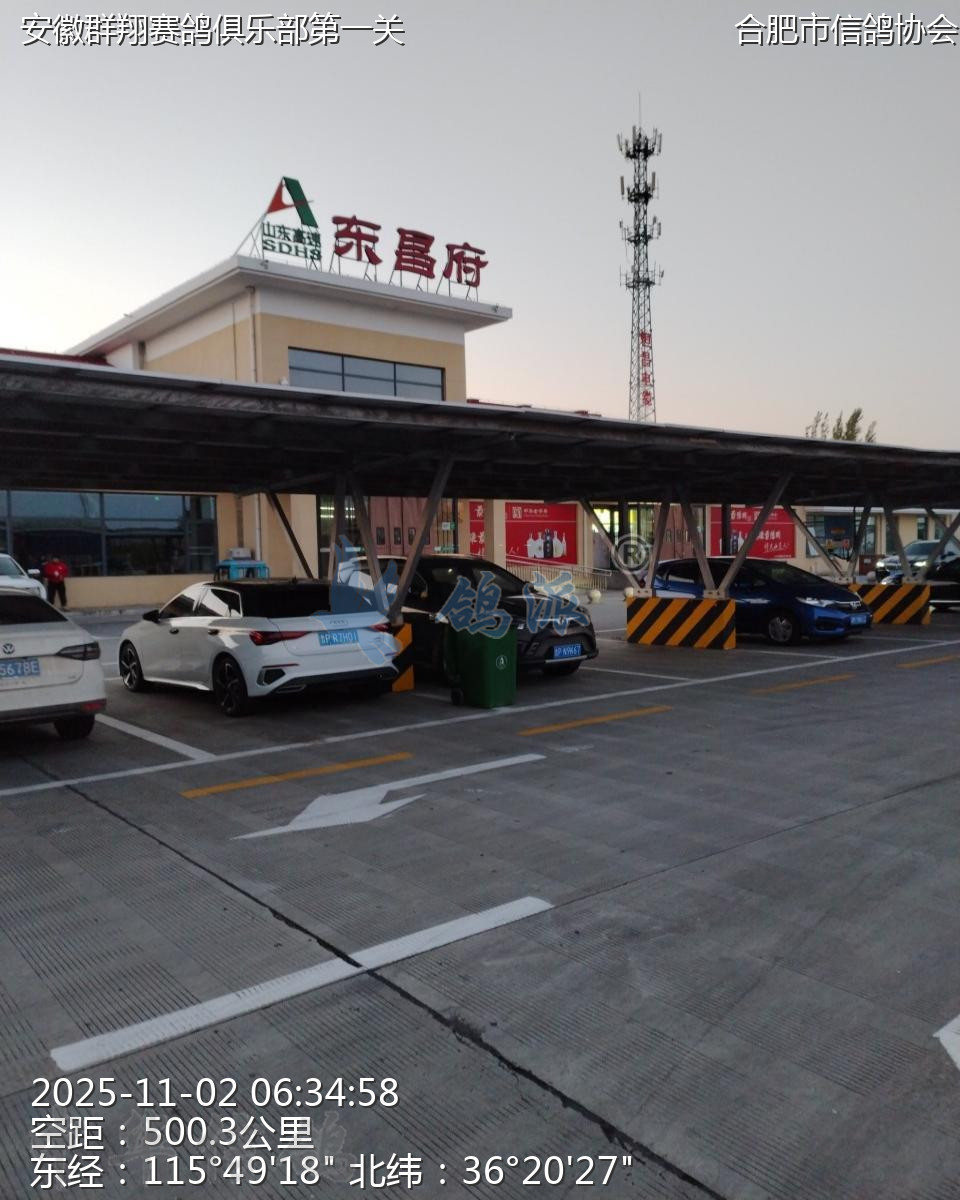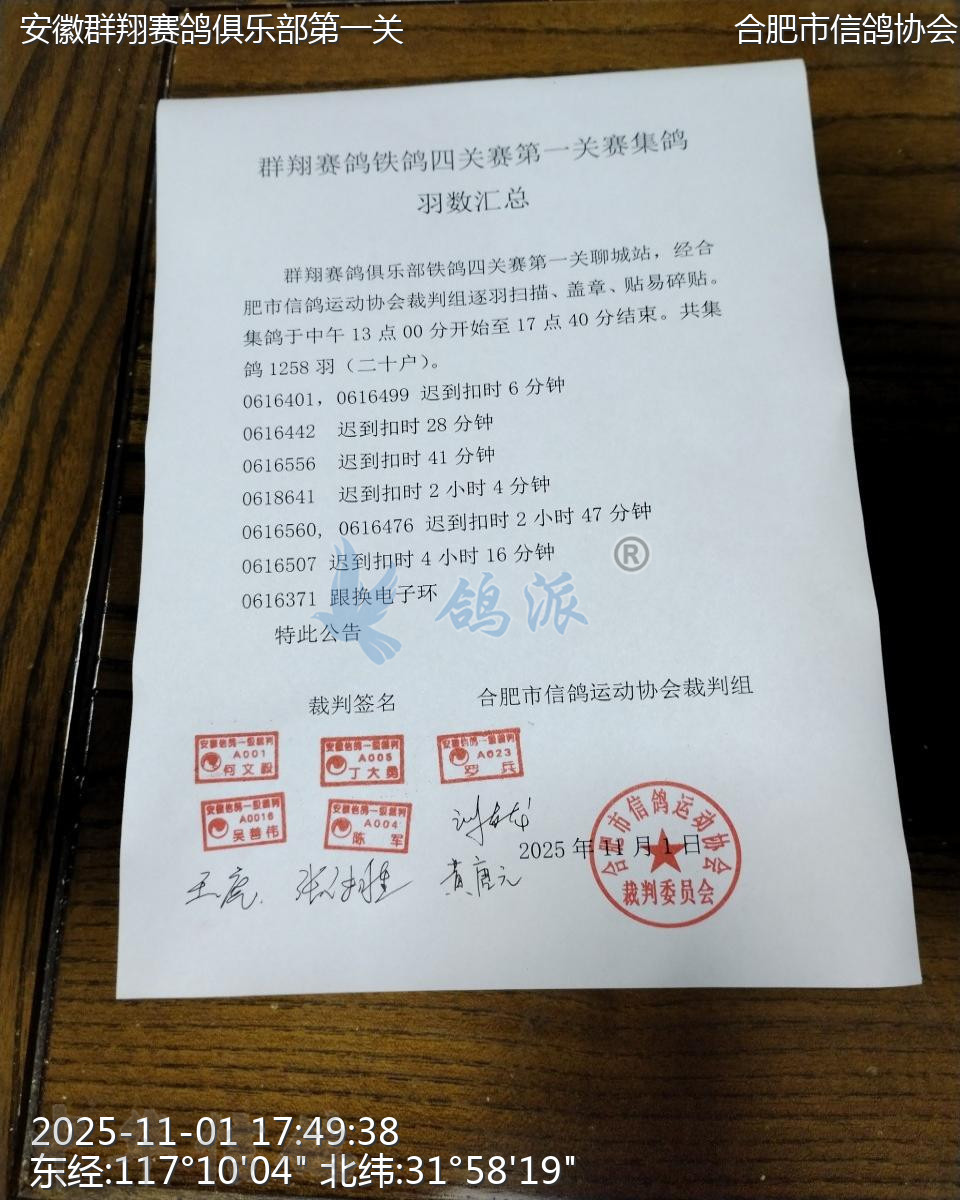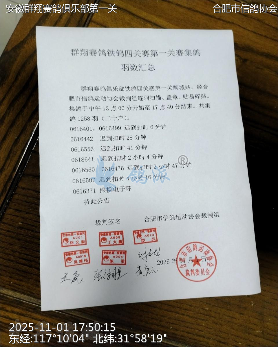 安徽群翔赛鸽俱乐部第一关——照片由"鸽派"提供。 司放轨迹 监放单