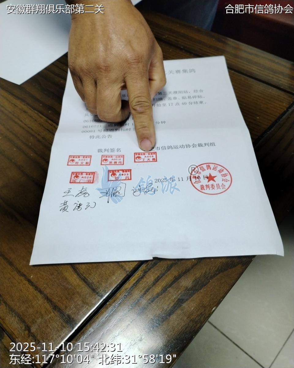 安徽群翔俱乐部第二关——照片由"鸽派"提供。 司放轨迹 监放单