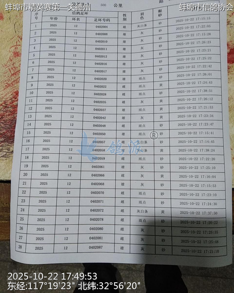 蚌埠精英赛鸽公司2025年秋特比环资