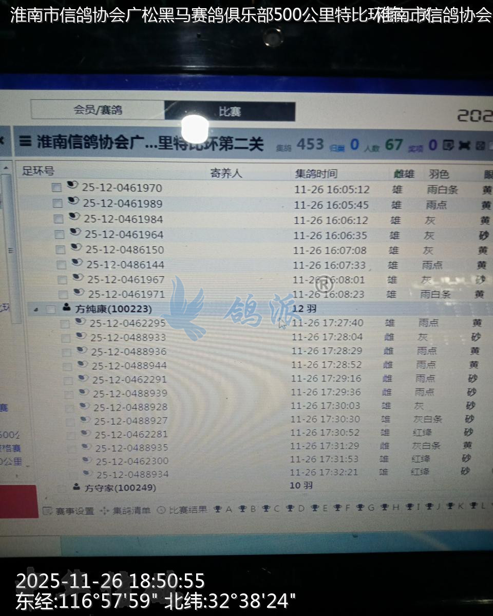 淮南市信鸽协会广松黑马赛鸽俱乐部500公里特比环第二关 的现场图片