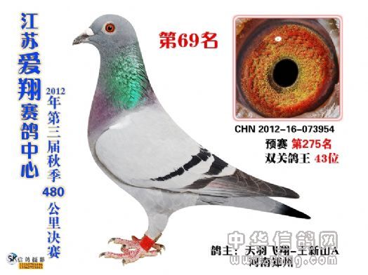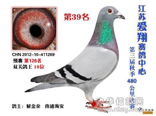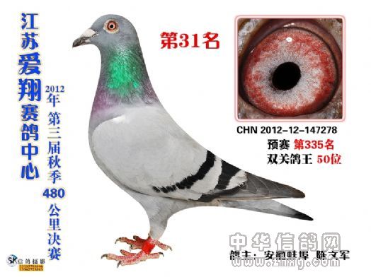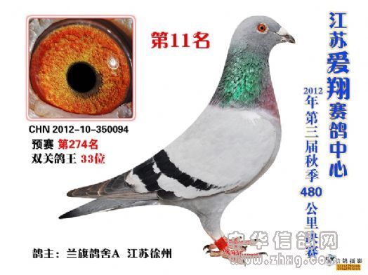 江苏爱翔赛鸽中心1-100名获奖鸽照片