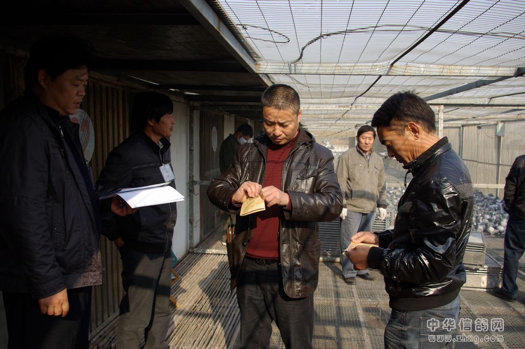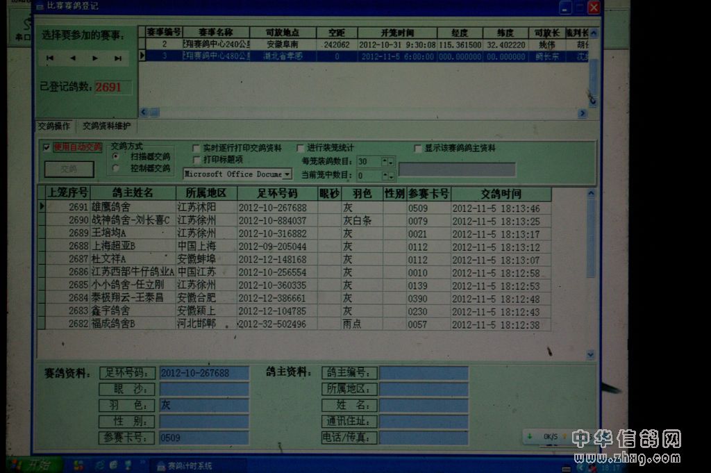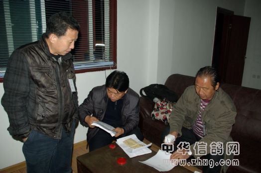 国家一级裁判:韩林同志与工作人员对集鸽清单进行抽检