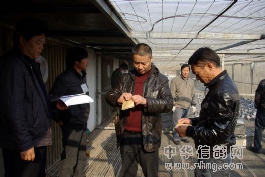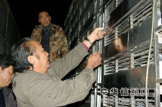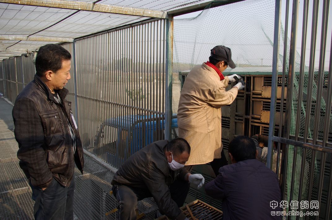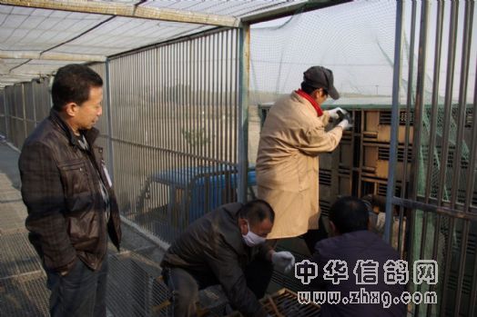 国家一级裁判:阙长东同志对赛鸽装笼进行监督