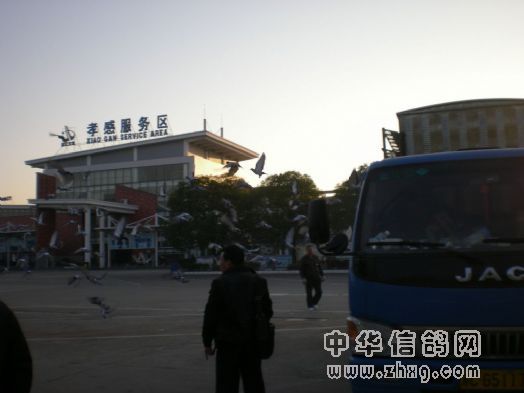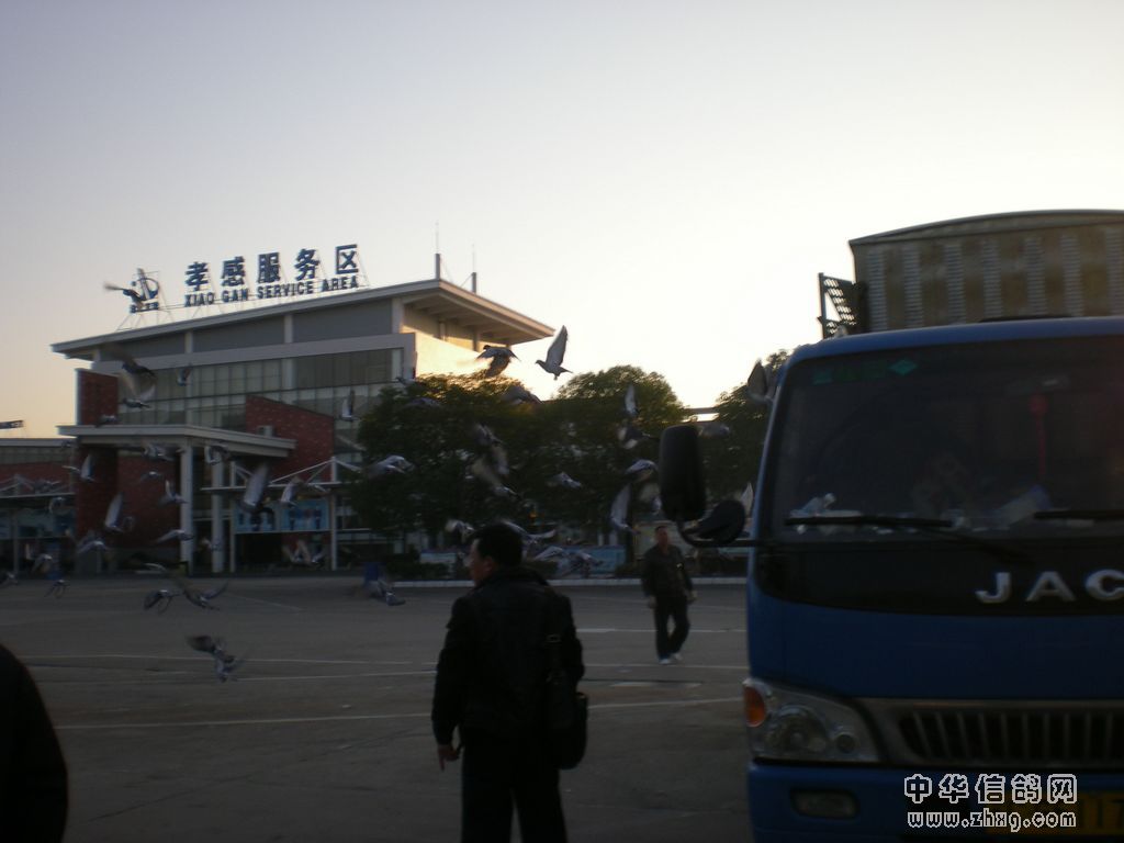 放鸽车已抵达司放地湖北孝感服务区,国家一级裁判:阙长东同志、当地监方人员及其鸽友代表随车全程监督