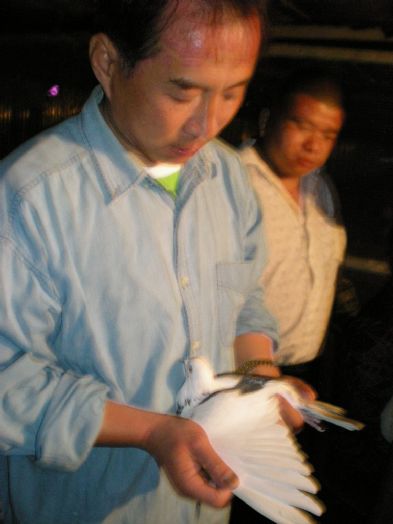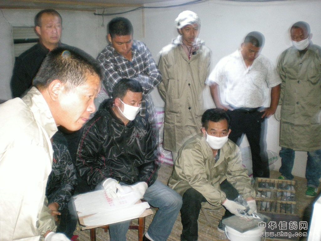 江苏爱翔赛鸽中心于2012年9月29日晚20:00开始清棚,由江苏省信鸽协会委派国家一级裁判员黄新才(宿迁)、国家一级裁判员刘开华(淮安)、国家一级裁判员王金良(徐州)以及各地鸽友代表对现存棚鸽进行逐羽扫描,到场鸽友对清棚现场进行了全程监督并探视上手。(附图)