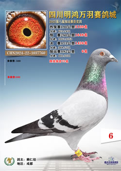 第二关预赛上笼:5863羽,开地址:广元剑阁,由眉山市信鸽协会监放,归巢:4605羽,分速:1229.15(米/秒)