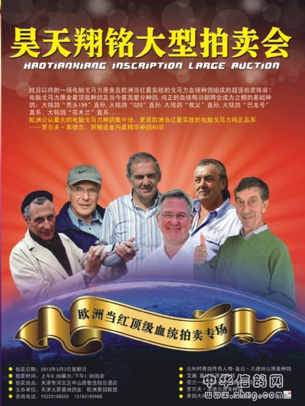 拭目以待的一场电脑戈马力原舍及欧洲当红最实战的戈马力血统种鸽组成的超强拍卖阵容!