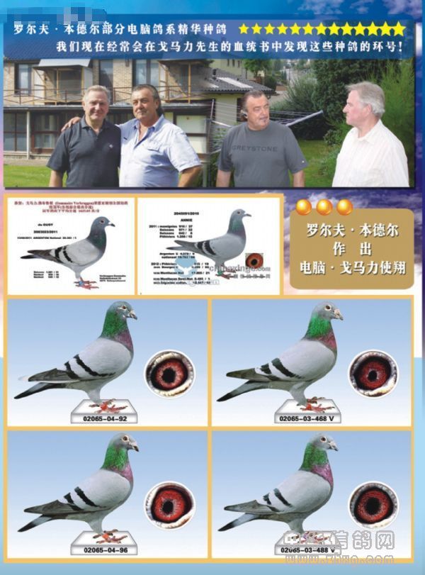 欧洲公认最大的电脑戈马力种鸽集中地,更是欧洲当红最实战的电脑戈马力纯正品系——罗尔夫•本德尔。将精选舍内最精华种鸽40羽。