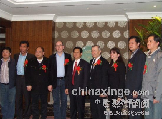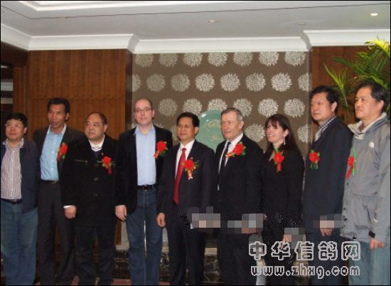左一:省信鸽协会副会长李国钧;左二:省体育总会秘书长、省信鸽协会常务副会长、秘书长肖元斌;左三:省体育局局长、省体育总会主席胡德春;左四:中国湖北金沙信鸽有限公司董事长陈成芳;左五:省体育局新华路体育中心主任邹肃运。