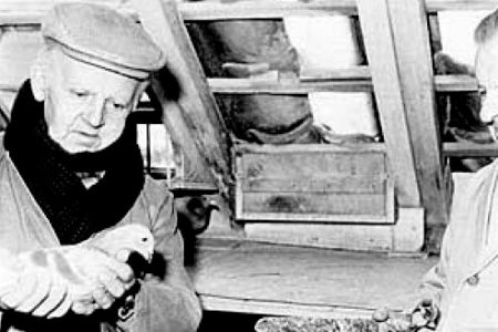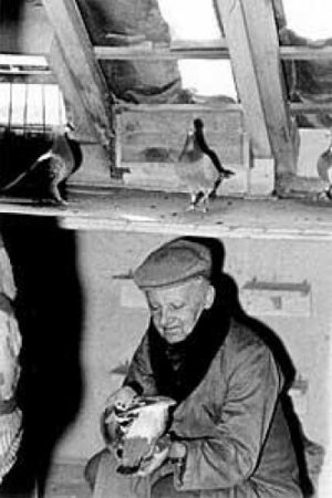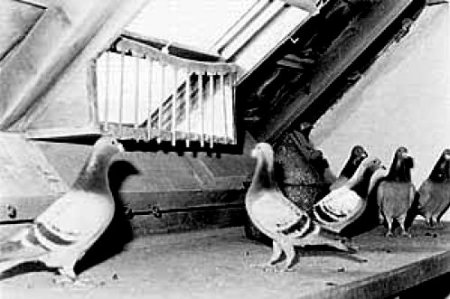 1920年艾德兰和查理已经成为痴迷的鸽友,他们都有自己的一间小鸽舍,查理告诉我其中一间由原来的鸡舍改造而成。杨(Jaan)的“塔莫号”经常卧在树篱旁边。杨只要将自己的手放到树篱上,“塔莫”就会立刻过来到他手上。