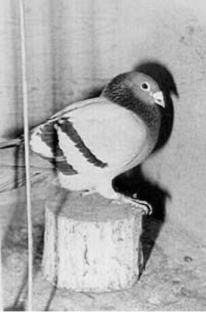 就像前面提到的那样,冯斯与贝尔拉尔(Berlaar)的啤酒酿造师史高特(Schoeters)成为好友,他和弟弟艾德兰一起来到赫伦陶特后遇到 了古森斯(Goossens)先生,他也是史高特先生的朋友。“你在这里做什么?”艾德兰指着一个小兔笼问道。在兔笼中卧着一羽鸽子,羽毛非常陈旧,而且尾巴也很脏。兄弟俩仔细地检查着这羽鸽子,发现他是去年的晚生鸽,仍旧有3根主羽没有倒完。他们询问是否可以买下这羽鸽子,史高特说这羽鸽子不值得保留。但他们还是买下了这羽鸽子,冯斯和艾德兰满意地将他带回家。换羽后他看起来似乎变了模样,而且体型也非常不错,“石板灰”得到了新生。在史高特的拍卖会 上,冯斯买了一些鸽子,其中有一羽红色灰色雌鸽。她的比赛成绩非常不错,曾赢得拿永冠军和奥尔良冠军。“她的幼鸽赛季参赛记录非常多,”路易斯回忆说。这 羽灰色雌鸽与“石板灰”成为非常不错的配对。他们育出的鸽子多数都是白珍珠眼的浅斑鸽,就像“老大”(Oude Grote)和“年轻白眼”(Jonge Witoger)那样。兄弟们说这些鸽子都拥有漂亮的体型,丝滑的羽毛和坚韧的性格。