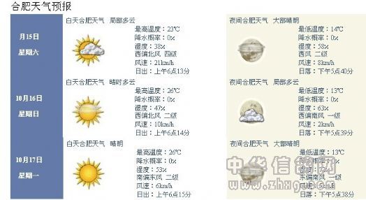 皖江赛鸽联盟10月16日220公里鸽王赛线沿途主要城市天气预报一览