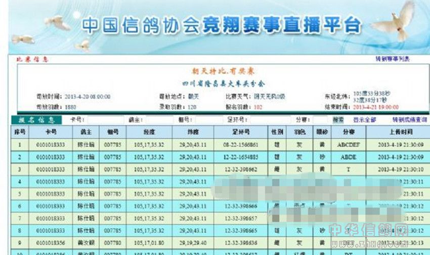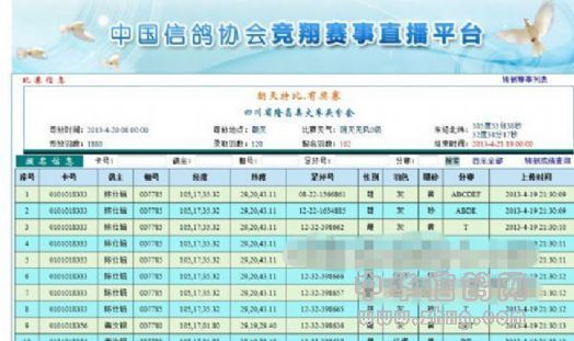 2013年4月20日,鸽友瞩目期盼的朝天特比环大赛如期而至,大赛严格按照规程在2013年4月20日早上8点准点开笼放飞。朝天-隆昌的赛线,鸽子必定会经过地震灾区。