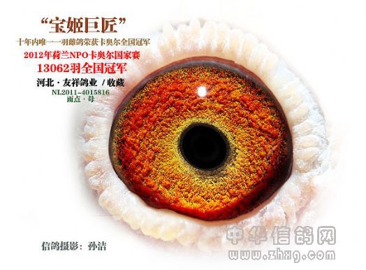 2012年年底友祥鸽业再次将2012年荷兰卡奥尔全国冠军引进中国,这是一羽近十年来一羽卡奥尔大赛冠军中的雌鸽。