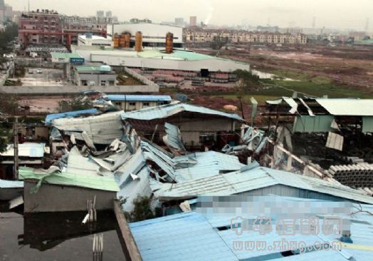 校园,东方明珠学校,教学楼楼顶被掀翻,校园内树木及电线杆也倒伏殆尽。学生被震碎的玻璃划伤,电力供应也暂时切断了,财产损失有一千多万。