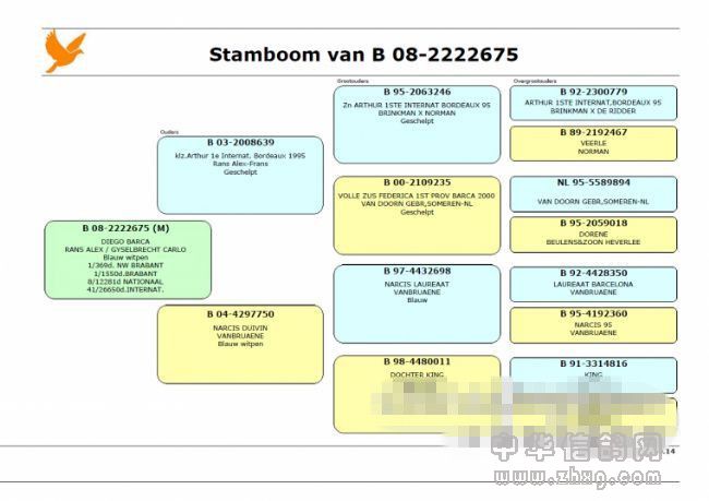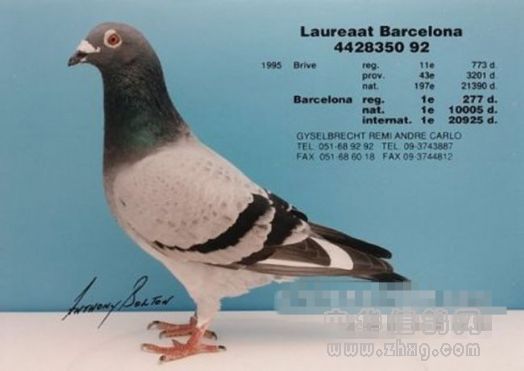 “赢得巴塞罗那国际冠军意味着很多。”卡罗·吉塞布赖特医师说道,他的育种技能成就了“巴塞罗那荣耀号”在1995年一举夺魁的辉煌。“这对于每一位鸽友来说都是不平凡的经历。赢得巴塞罗那冠军就像梦想成真。这项赛事已经成为我赛鸽生涯中最重要的部分。巴塞罗那冠军都是极具天赋的赛鸽,它们通常也会成为优秀种鸽。”这同样适用于“巴塞罗那荣耀号”,卡罗对于育种有很多想法,正因为如此荣耀号血系才不断取得优异的成绩,包括:
