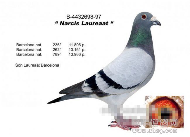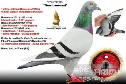 前一羽没有被亚洲鸽友高价引走的巴塞罗那国际冠军便是吉塞布赖特家族的“巴塞罗那荣耀号”(Laureaat Barcelona BE92-4428350),这羽20925羽比赛冠军也具备着杰出的育种能力,它的孙女也就是“娜茜丝荣耀号”(Narcis Laureaat)的直女正是新科巴塞罗那国际赛冠军“新荣耀号”的母亲,而“娜茜丝荣耀号”就是卡罗·吉塞布赖特医师原舍作育的。